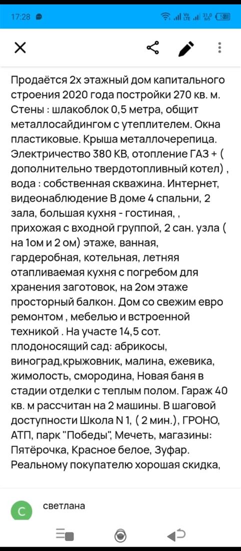 ID в ИМЛС: 19905970 Продам Дом площадью 270 м? ( г Баймак ул Ленина 2Д), участок 15 сот. (Земли населенных пунктов / Индивидуальное жилищное строительство), год постройки - 2022. Дом: Проект дома - индивидуальный, Материал стен - кирпич, Кровля - металлочерепица, Отопление - газ магистральный, Освещение - центральное, Водоснабжение - скважина, этажность - 2, сан.узел - В доме, балкон - 1, спальня - 3. Особенности дома: баня, сауна в доме, гараж, видеонаблюдение.